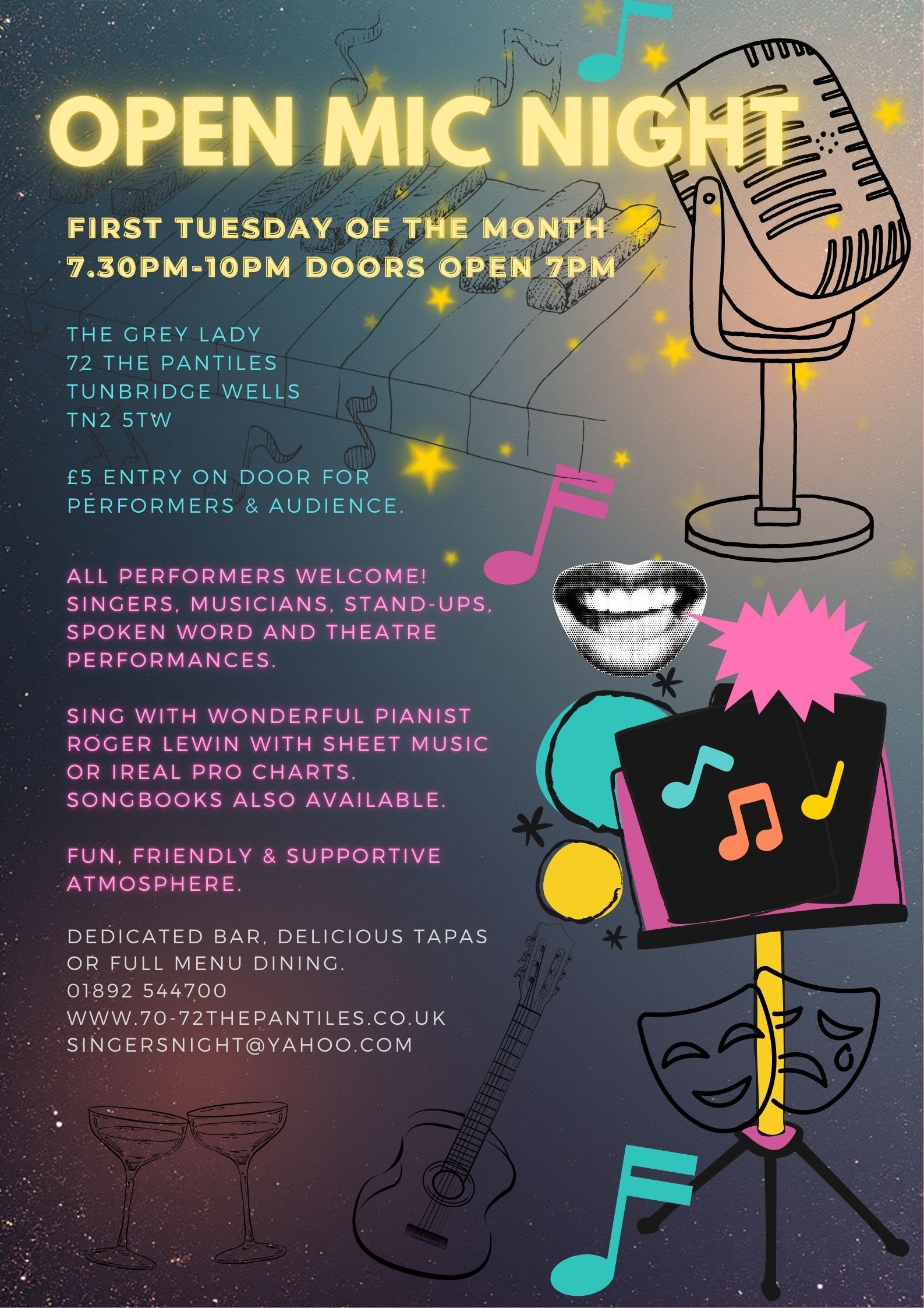 Experience some of the best live music Tunbridge Wells offers at The Grey Lady. Our events range from intimate acoustic performances by local talent to lively evenings where you can dance to the beat. Don't miss our popular jazz nights featuring some of the best musicians in the area. Check out our event calendar and book your tickets now.